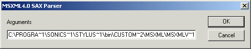 The Arguments field allows the user to change the command line and arguments configured with the custom validation engine when it was registered with Stylus Studio.