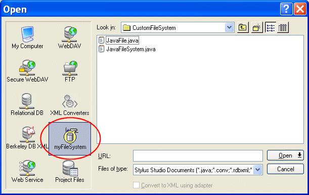 2. Register the finished custom file system with Stylus Studio, to make it available through the Stylus Studio