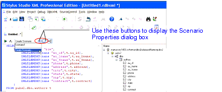 Home > Online Product Documentation > Table of Contents > Opening the Scenario Properties Dialog Box Opening the Scenario Properties Dialog BoxThere are two ways to open the Scenario Properties dialog box for DB-to-XML data sources. Both allow you to work on existing DB-to-XML data source scenarios or to create new ones. To open the Scenario Properties dialog box: