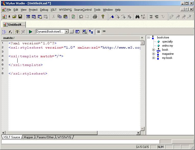 The default stylesheet that Stylus Studio creates contains one template, which matches the root node.