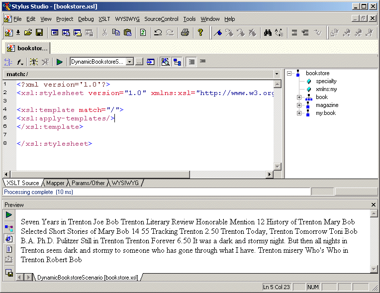 URL: field, type bookstore.xsl and click