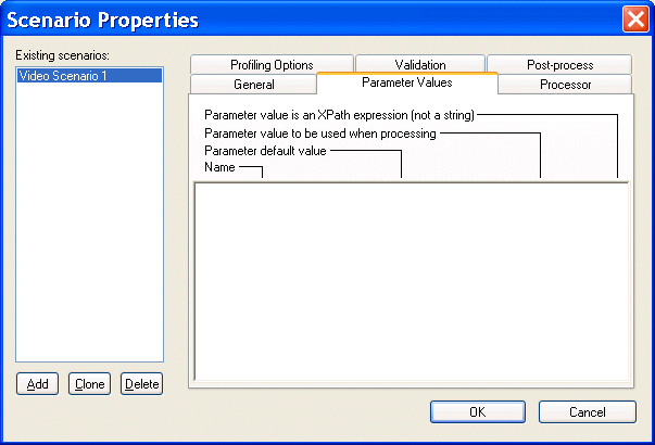 Figure 217. XSLT Scenario Parameter Values Tab