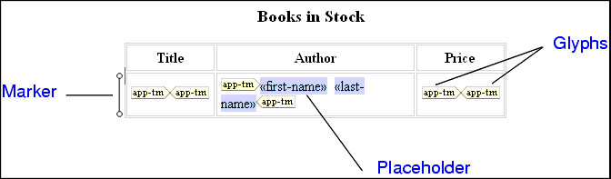 - marker - a small image to the left of a placeholder or table row. Hold the cursor over a marker to see the XSLT instruction it represents and the context in which it operates.