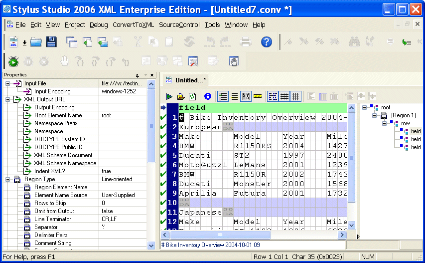 .conv file used by the adapter engine to convert non-XML files to XML. The Convert to XML Editor, shown in