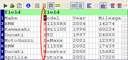 Stylus Studio displays a thin orange line that identifies the start of the newly defined field. To remove a field: