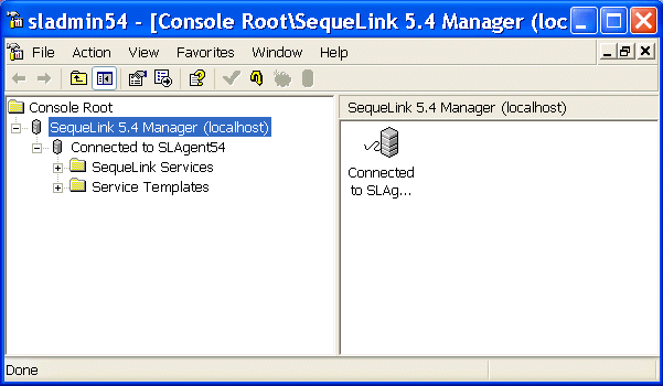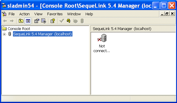 2. Expand the SequeLink 5.4 Manager (localhost) branch. This exposes another branch, Not connected to SLAgent54.