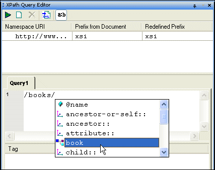 Figure 299. Sense:X Auto-completion in XPath Query Editor