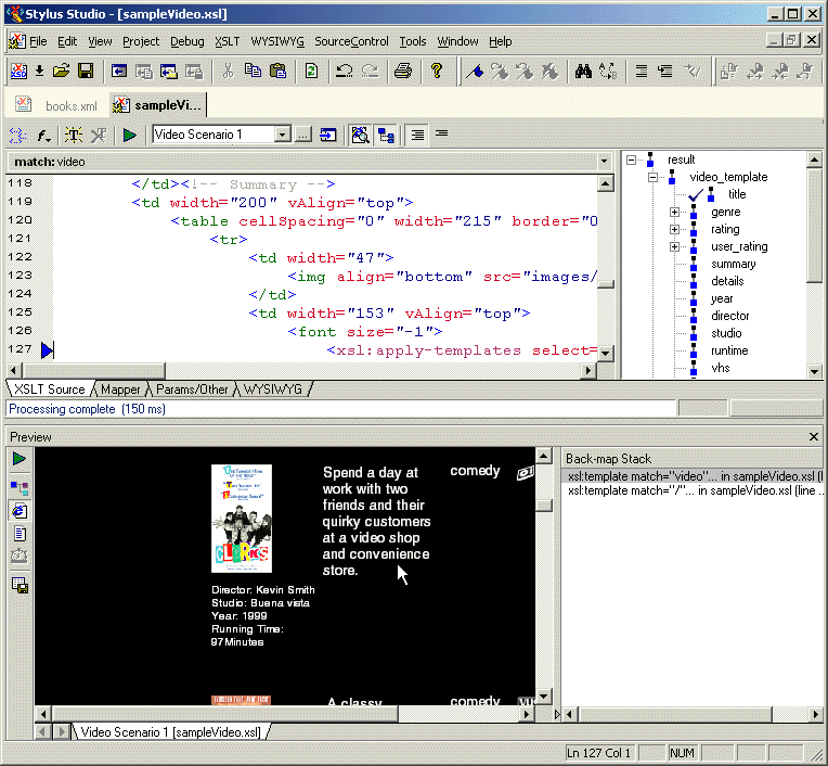 Also, you can click in the stylesheet and the backmapping feature highlights the text generated by that template.