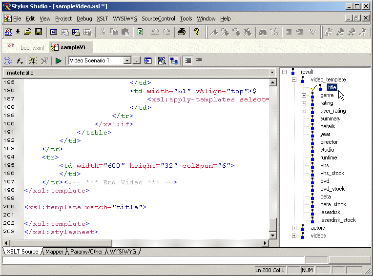 Home > Online Product Documentation > Table of Contents > Benefits of Using Stylus Studio Benefits of Using Stylus StudioNow that you have an understanding of what a stylesheet can do, you can appreciate the benefits of using Stylus Studio to create them. Stylus Studio is the first integrated environment for creating, managing, and maintaining an XSL-enabled Web presence. By combining the tools needed to create XSLT stylesheets in a visual editing environment, Stylus Studio speeds initial development and eases maintenance. Key elements of Stylus Studio's XSLT features include Structural Data ViewStylus Studio graphically displays the structure, or schema, of the XML data to which you want to apply a stylesheet.