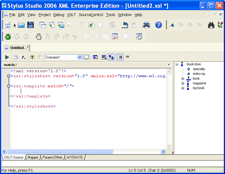 The default stylesheet that Stylus Studio creates contains one template, which matches the root node.
