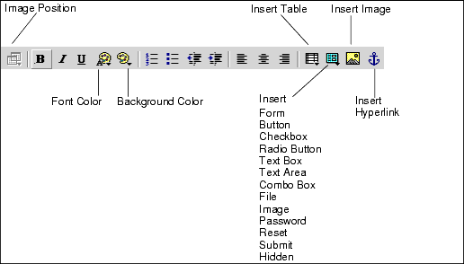 WYSIWYG tool bar. Select the text you want to operate on and then click the tool that provides the feature you want.