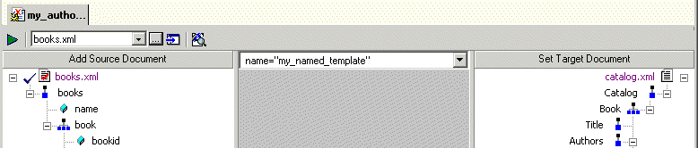 Home > Online Product Documentation > Table of Contents > What Happens When You Create a Template What Happens When You Create a TemplateWhen you create a template, Stylus Studio switches the XSLT mapper to the new template. The attributes identifying the template you are currently viewing are displayed in the template drop-down list at the top of the mapper canvas.