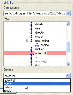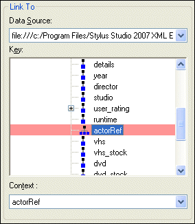 Link To field, select the node you want to use to define the inner loop in the XQuery or XSLT that will be used to create the report. If you defined more than one data source in
