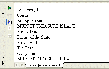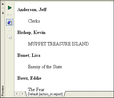 This example describes how to build a simple report in XML Publisher, shown here, that lists actors and the movies they have appeared in. The information for this report is based on the data in videos.xml, in the VideoCenter folder in the Stylus Studio examples project. Specifically, it matches the