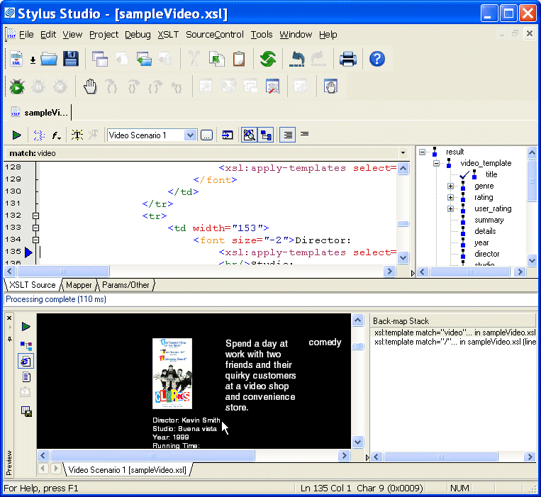 Also, you can click in the stylesheet and the backmapping feature highlights the text generated by that template.