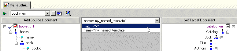Home > Online Product Documentation > Table of Contents > What Happens When You Create a Template What Happens When You Create a TemplateWhen you create a template, Stylus Studio switches the XSLT mapper to the new template. The attributes identifying the template you are currently viewing are displayed in the template drop-down list at the top of the mapper canvas.