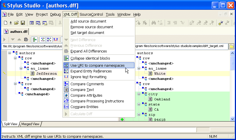 In addition to using the Diff tool from the Stylus Studio user interface, Stylus Studio also provides a commandl line utility,