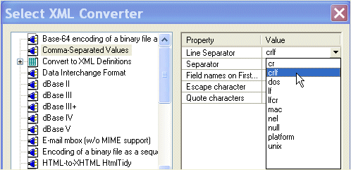 Convert to XML Definitions tree and select the converter you want to use to convert the file you selected in