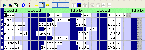 For display purposes, we can remove the spaces Stylus Studio has inserted for readability (the cells with the light blue shading) by clicking the