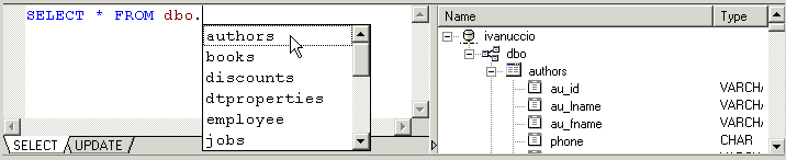 dbo.authors, for example). The format you choose depends on the database you are using - some databases require qualified names, for example. You might want to use this feature to add object names to an SQL/XML statement without typing them.