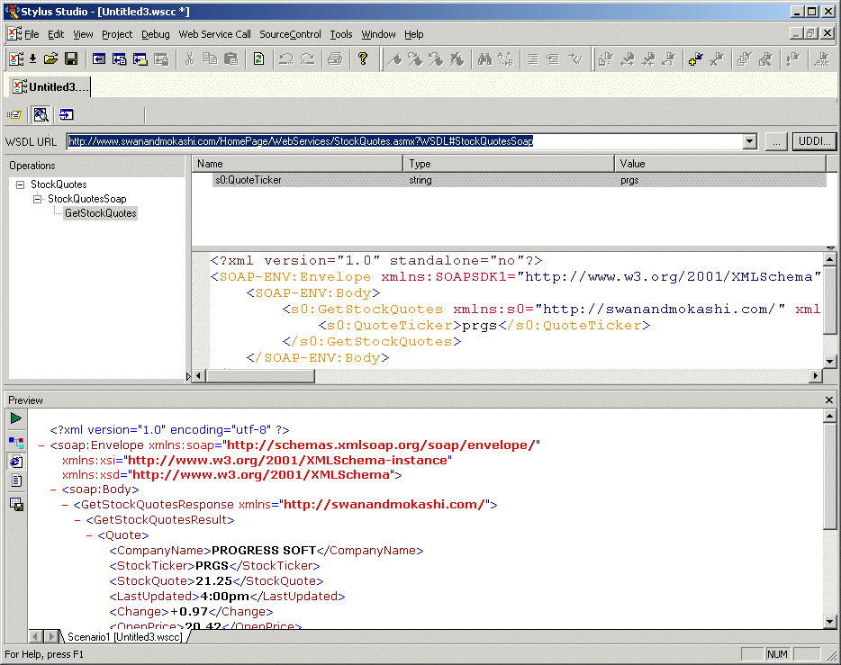 Stylus Studio opens a new document in the Web Service Call Composer.