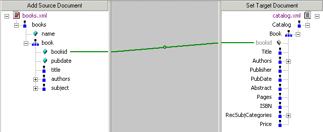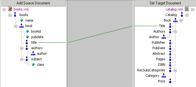 1. Using either the left or right mouse button, drag the source document element or attribute to the appropriate node on the target structure.