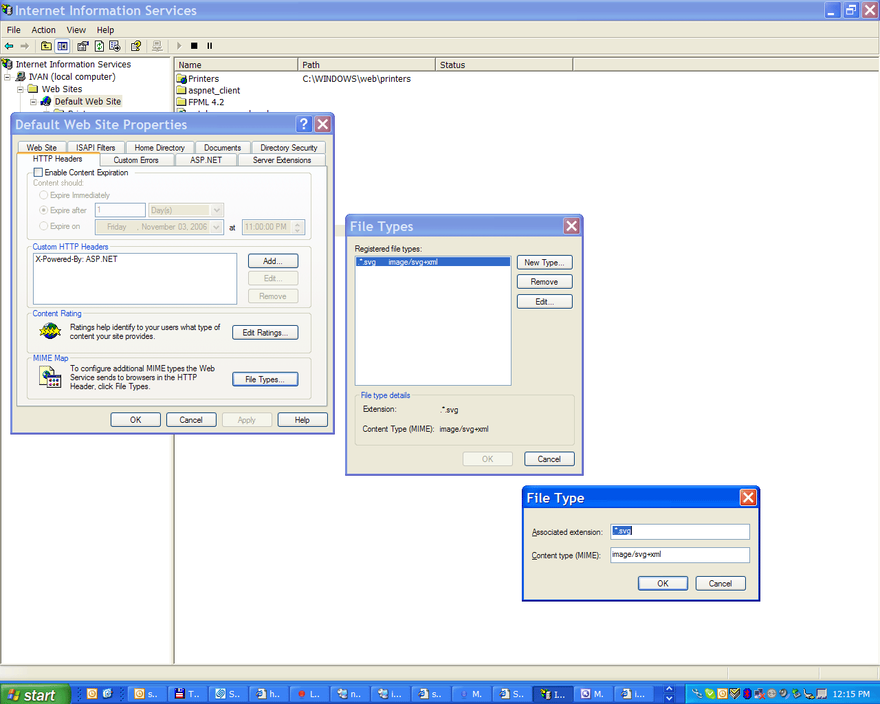 I have added the mime type to my IIS web server with *.svg being associated with image/svg+xml and I still receive a blank screen after restarting my web server.