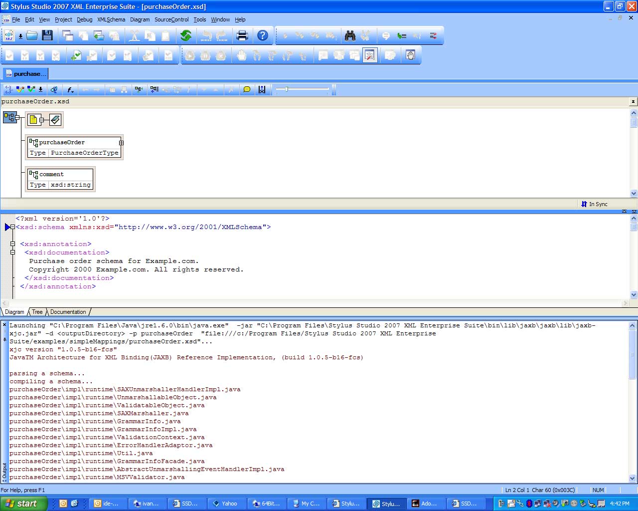 Launching "" -jar "C:\Program Files\Stylus Studio 2007 XML Enterprise Suite\bin\lib\jaxb\jaxb\lib\jaxb-xjc.jar" -d <outputDirectory> -p myproj "file:///c:/Project/PurchaseOrder.xsd"...