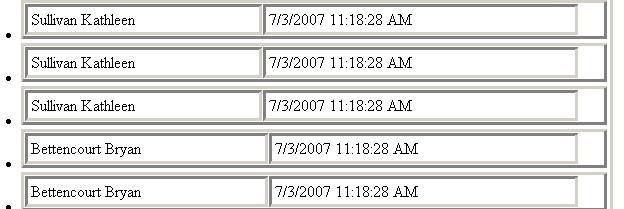 In other words the people listed should have difrent times next to their name. I included a couple screen shots, Can anyone tell me what I am doing wrong or send me a link to a multi element list tutorial?