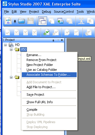 Right-click the project folder you want to associate with an XML Schema.