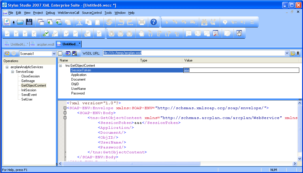 1) If I edit the soap request slightly by removing the first namespace after <tns:GetObjectContent ... then I am able to edit the WSDL Values... Interesting?