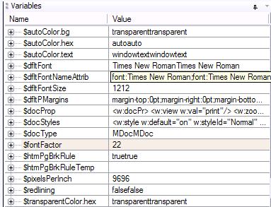 While debugging stylesheets and viewing the Variables window, I noticed that the variable values repeat themselves. For instance, if I have variable $docType, and the value is "Word", the Variable window displays this as "WordWord". This happens for every variable displayed in the window.