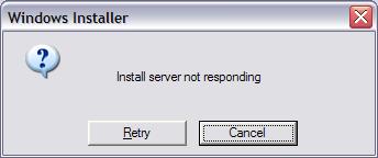 Eventually a new Windows Installer dialog appeared that said "Install server not responding". What install server? I never got this message