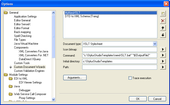 Unzip the attached archive StylusStudioTemplates.zip in c:\ you will get c:\StylusStudioTemplates, then go to Tools -> Options -> Custom Document Wizards and fill the parameters as in the screenshot CustomDocumentWizard.png.