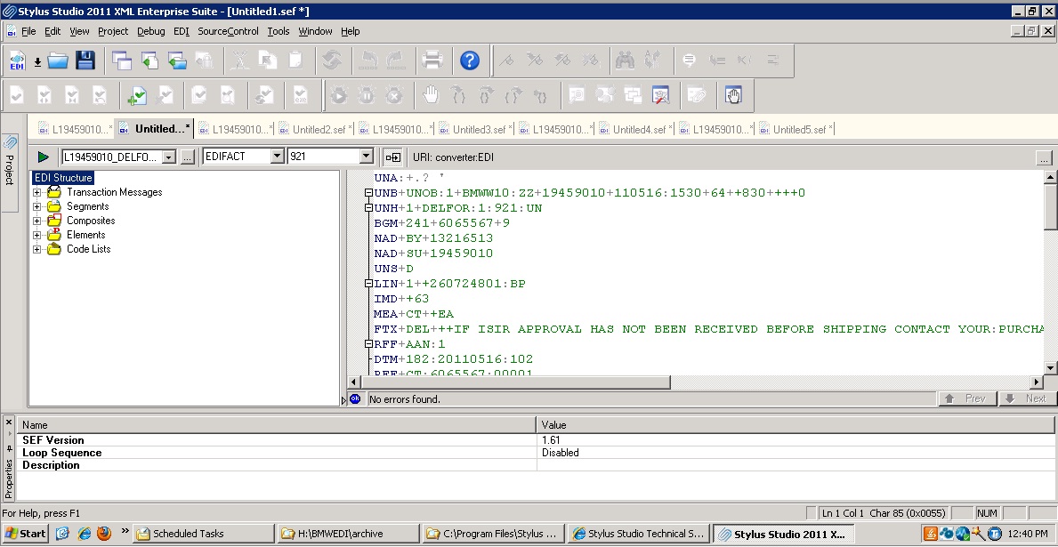 I have EDIFACT 921 DELFOR (delivery forecasts). I need 5 of them to be converted into XML and I want to display the Quantities, Delivery Dates, Etc. in non-technical terms. Please advise. I am new to using Stylus Studio. Here is a screenshot of one example within Stylus Studio 2011 XML Enterprise Suite.