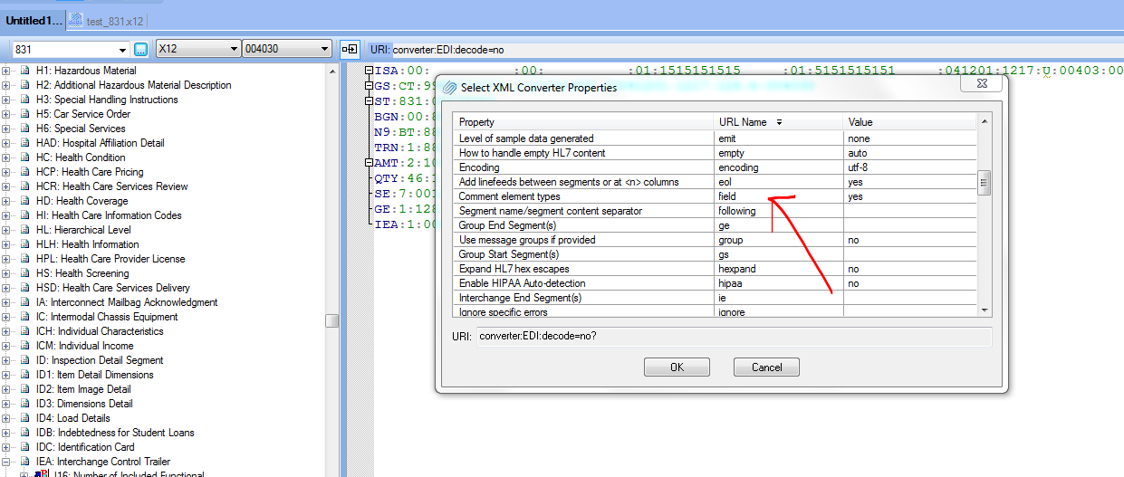 Note: the RESPc.txt file is the EDI input to convert to XML. The opt=yes is used since it was recommended to us for other conversion issues and finally, I found the options your screen shot showed ~ thank you.