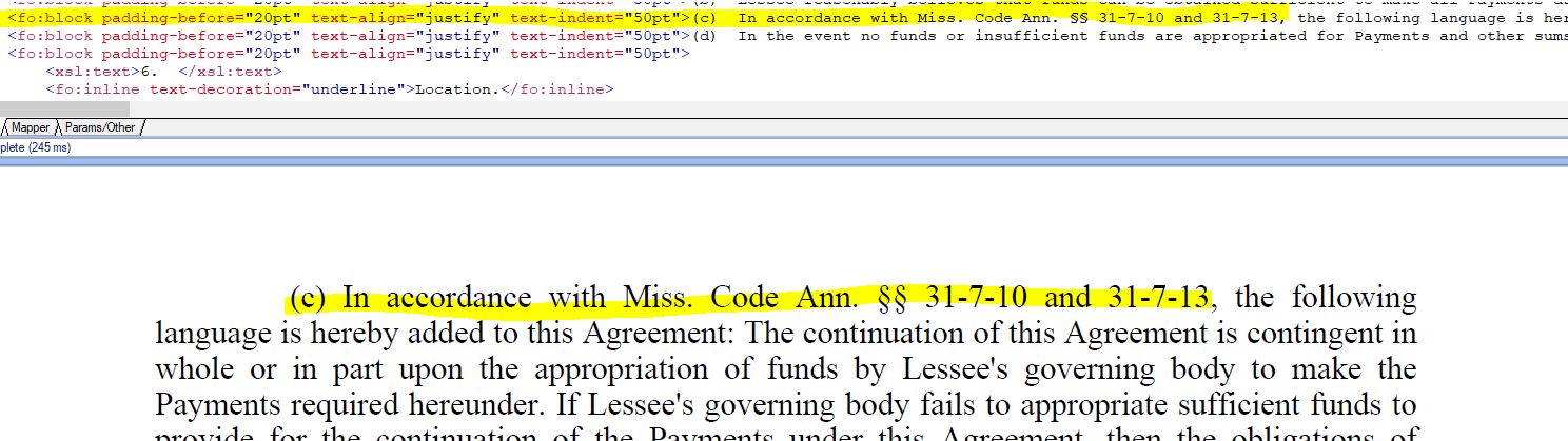 I have a document with the symbol: §§ within the document. It is working properly within Stylus Studio when the post processing preview completes. Once it is put into our system and a final PDF document is created there are issues. Please see the screenshots for more clarity.