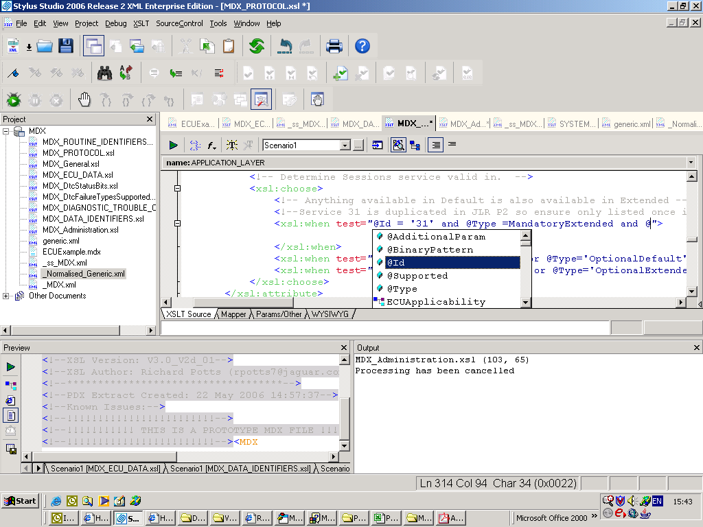 In the attachment Image, I'm about to insert another attribute to the "test" of the xsl:when command. The 'code prompt' pops up when I type @, (which is nice) but if I were to select say @Supported from the popup list, it will delete all the other test instructions I've coded i.e. @id='31 and @Type=Mandatory - I've fallen for this 'trap' an number times....