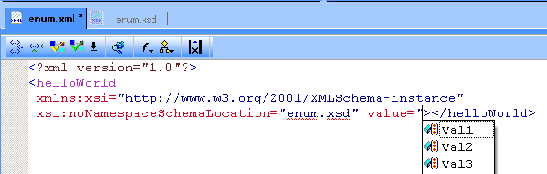 <xs:element name="helloWorld" type="PossibleValues"/>