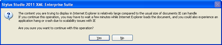 The issue for me is that the output is not small - 175KB - and the first time I run it I get a warning message - see attached image. This is a pain as the first thing I will do is change the preview mode to 'text'. The warning message is only for the first time the preview is generated and it does remember the mode if the transformation is done again.