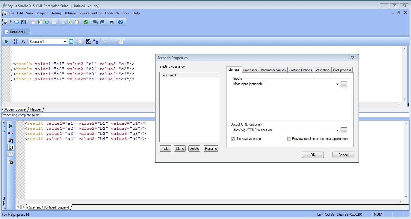 I've just stared to use Stylus Studio to develop Xqueries in conjunction with Oracle's XMLTABLE function in the database. For that I produce a flat XML sequence similar to the following: