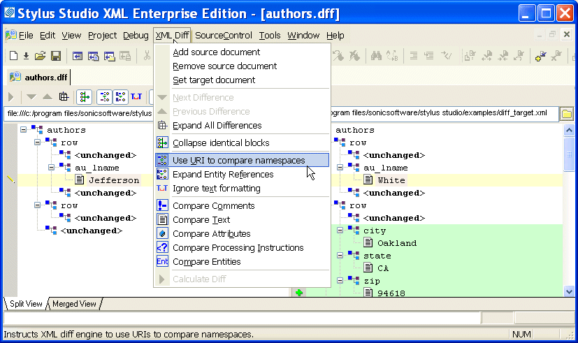 XML Diff menu, shown here.