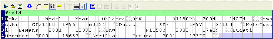 By default, Stylus Studio displays fixed-width files using an 80-character row. This accounts for the input files appearance when it is first displayed as a fixed-width file - if you scan the document, you can see that all of the file's original information, including the CR/LF control characters has been retained, but that the formatting differs - the original input file had eight rows; now it has four rows of 80 characters.