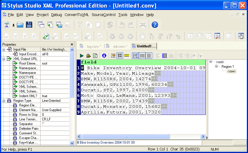 .conv file used by the adapter engine to convert non-XML files to XML. The Convert to XML Editor, shown in