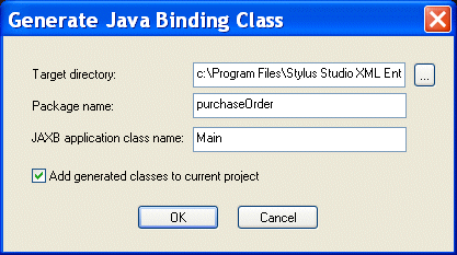 Generate Java Binding Class dialog box appears.
