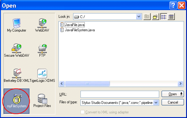 2. Register the finished custom file system with Stylus Studio, to make it available through the Stylus Studio