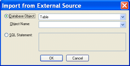 After you specify the OLE DB provider and database server connection information on the Microsoft Data Link Properties dialog box, Stylus Studio displays the Import from External Source dialog box, shown here:
