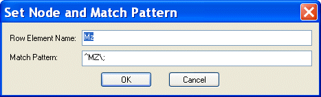When you open the dialog box, the Row Element Name and Match Pattern fields contain default values that reflect the currently selected row in the document pane or node in the schema pane. Defining a New NodeTo define a new node: