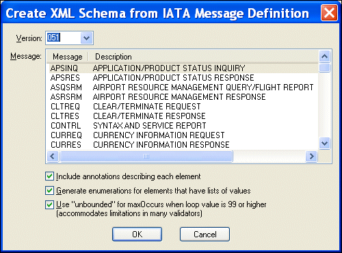 Home > Online Product Documentation > Table of Contents > Creating XML Schema from IATA Message Types Creating XML Schema from IATA Message Types