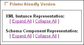 - Expand and collapse XML instance and schema component representations. You can do this for every XML instance or schema component by clicking the